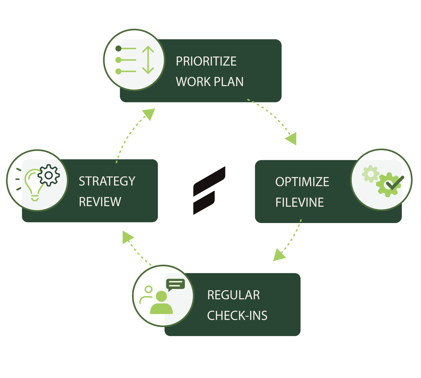 Our optimization plans give you a direct point of contact and a dedicated Filevine expert focused on optimizing your business processes. We’ll develop a customized work plan with frequent check-ins and fast responses. We see ourselves as an “insourced” team member who gets to know your business and your challenges and truly become part of your team.